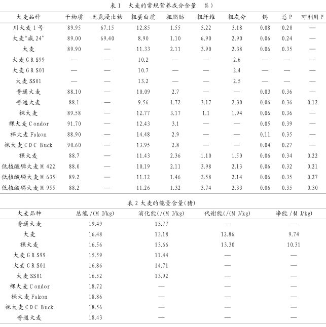 不同大麥品種,營養(yǎng)物質(zhì)的含量不同,營養(yǎng)物質(zhì)含量變化范圍較大,因此,使用大麥作為飼料原料時(shí)應(yīng)控制好原料品質(zhì),在條件允許的情況下最好測一下常規(guī)營養(yǎng)成分含量。