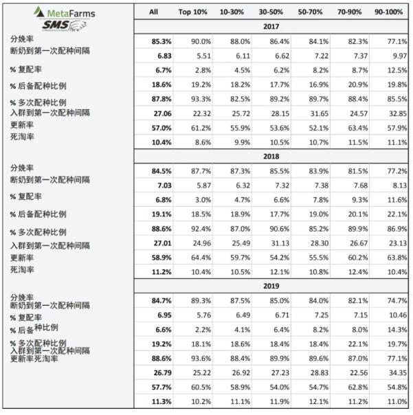 該報(bào)告由美國養(yǎng)豬數(shù)據(jù)公司MetaFarms及子公司SMS具體制作,所用數(shù)據(jù)為其系統(tǒng)中至少建檔3年以上的美國豬場的數(shù)據(jù),2019年該數(shù)據(jù)集涵蓋母豬場600個(gè),母豬1,588,246頭,保育豬15,666,136頭,育肥豬17,479,763頭,斷奶到育肥豬8,023,610頭。