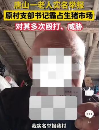 6月13日,北京青年報、長沙政法頻道報道稱,6月12日,河北唐山一六旬農(nóng)村老人武風元,發(fā)布視頻實名舉報路南區(qū)漢沽漢豐鎮(zhèn)皂甸村原村支部書記兼村長,該書記霸占生豬市場,嚴禁任何收豬商販進入該村,如有發(fā)現(xiàn),則采取砸車、打人措施。同時,還伙同其兄與侄子將村里的生豬、母豬收購價格壓至極低,武風元不愿出售自己的生豬,該書記帶人一天之內(nèi)圍毆了武風元兩次。
