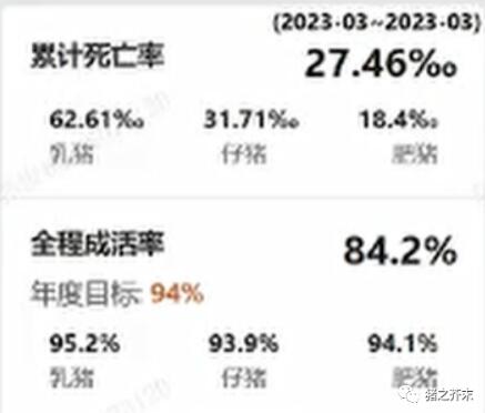 這個看板上累計死亡率與全程成活率的和并不是100%,我猜可能是使用了不一致的豬群口徑。
